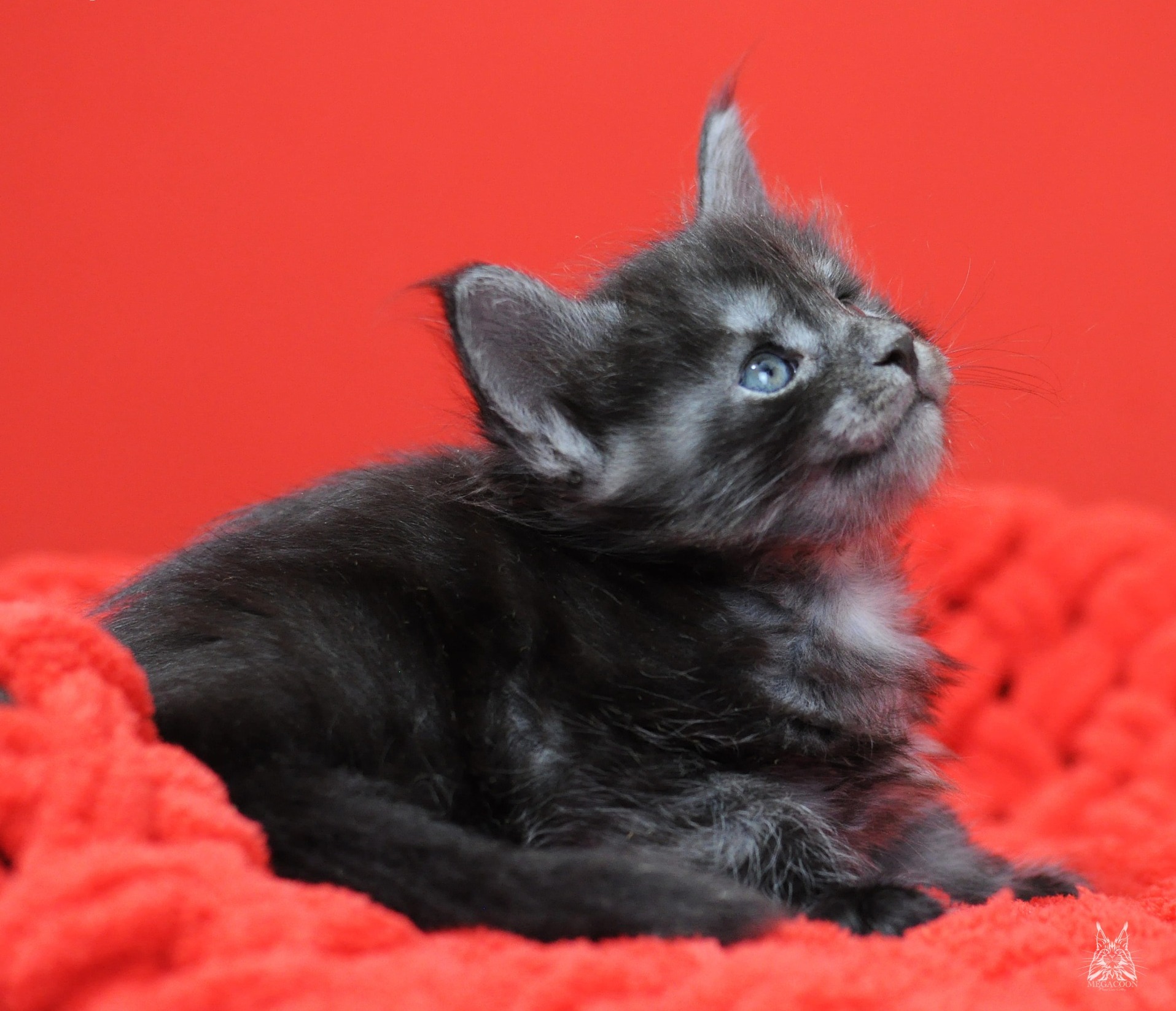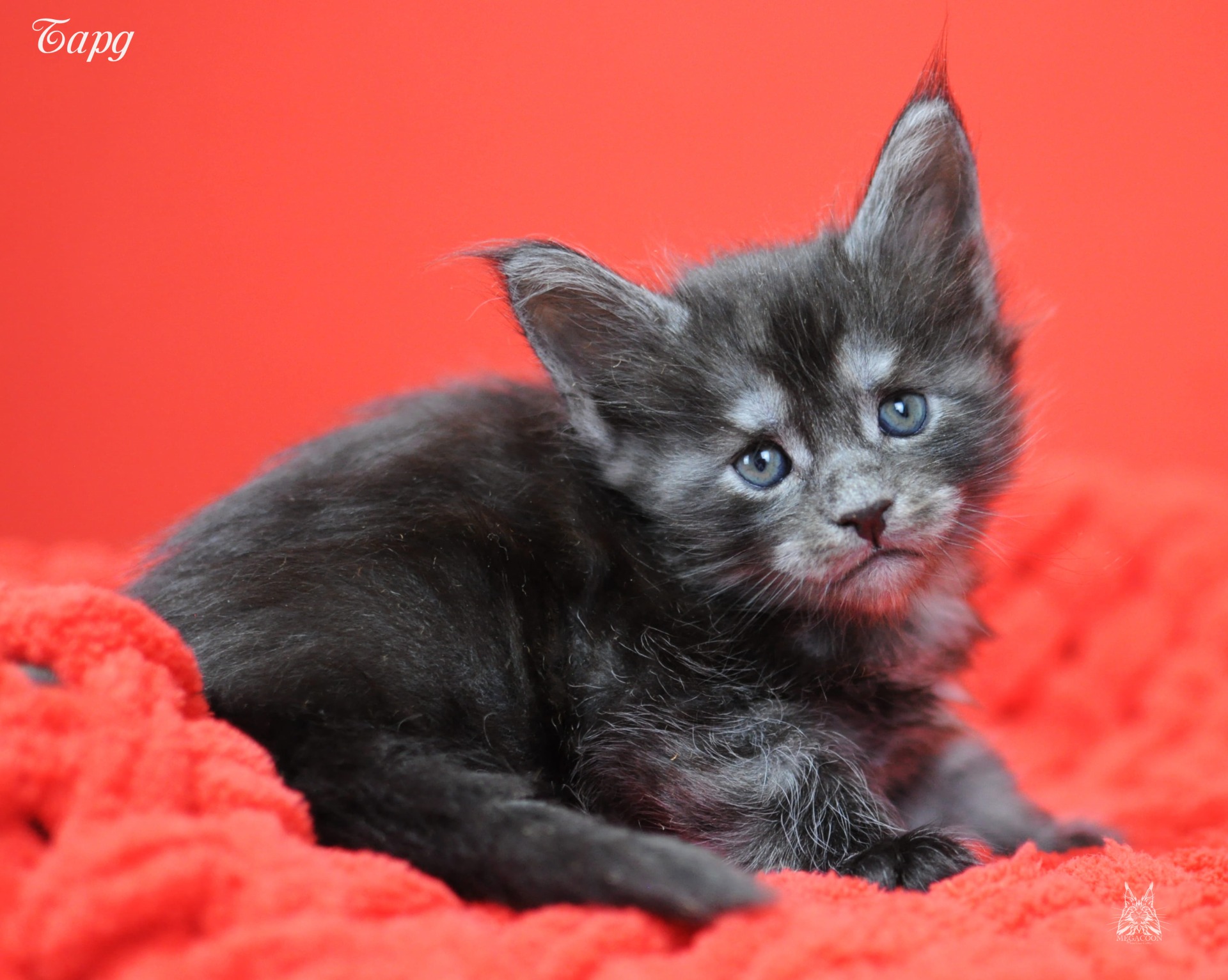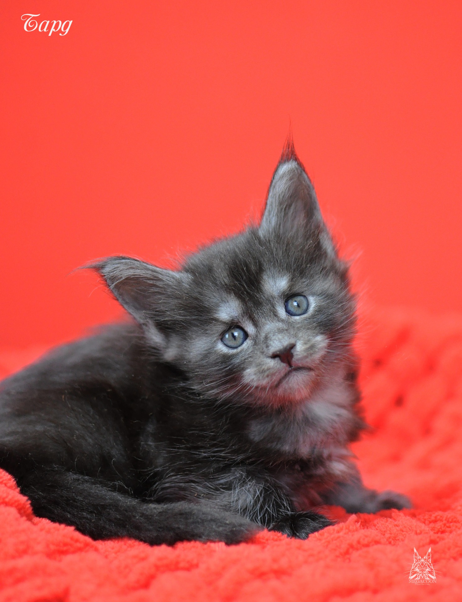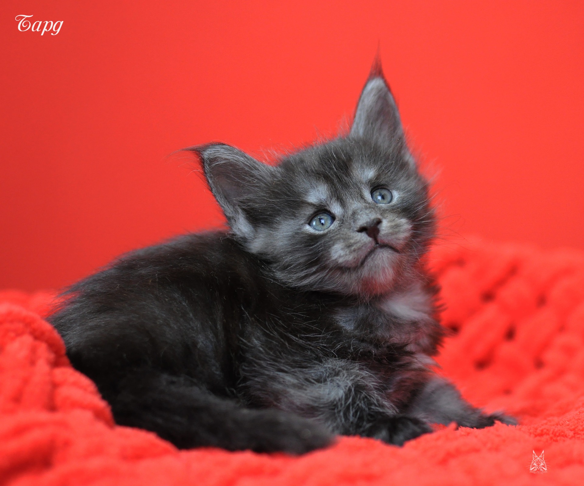 Бард. Котенок-волченок в трендовом на сегодняшний день окрасе "черный дым". Котик крупный, мордатый с массивным подбородком, большие уши украшают густые кисточки.