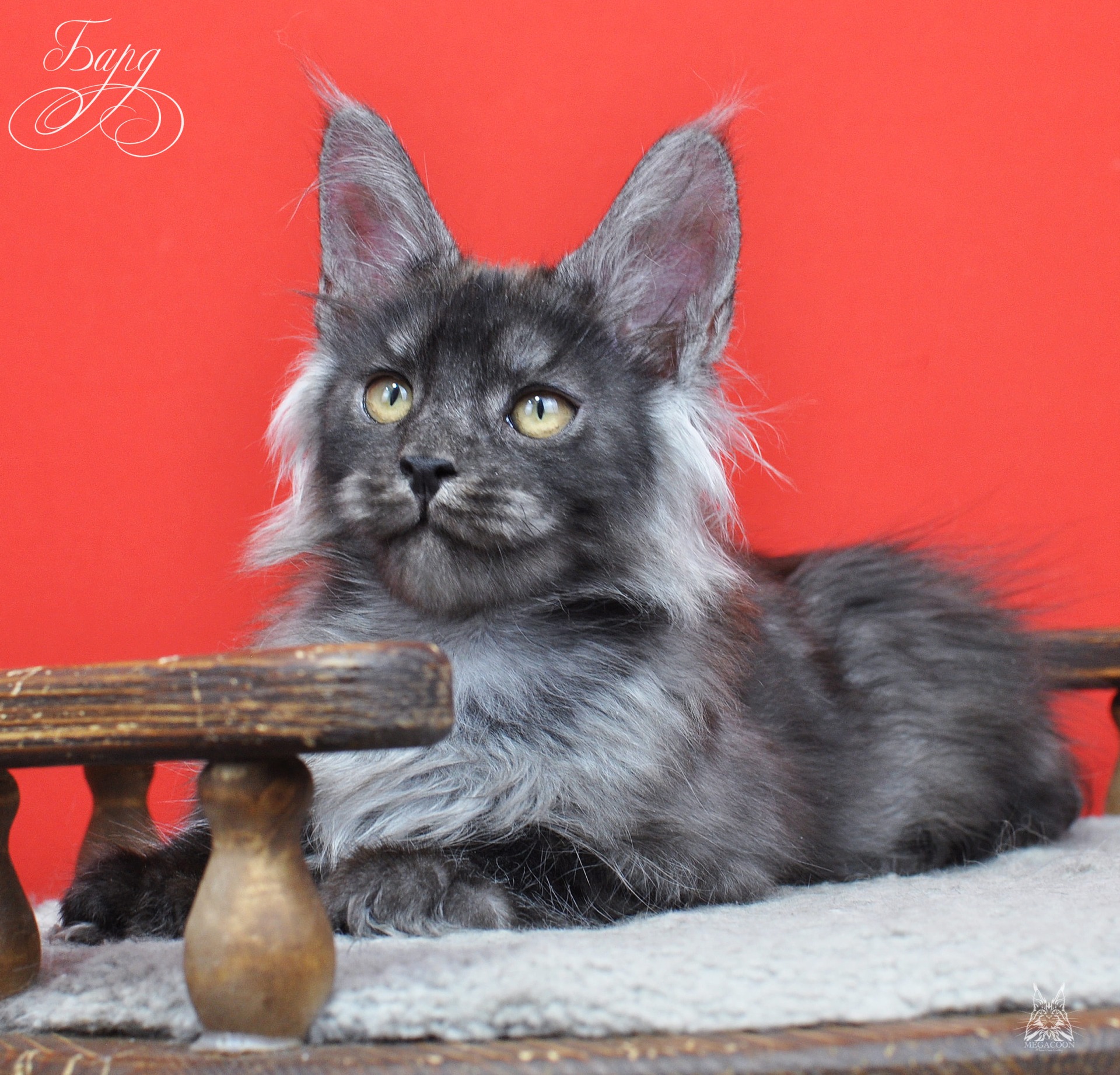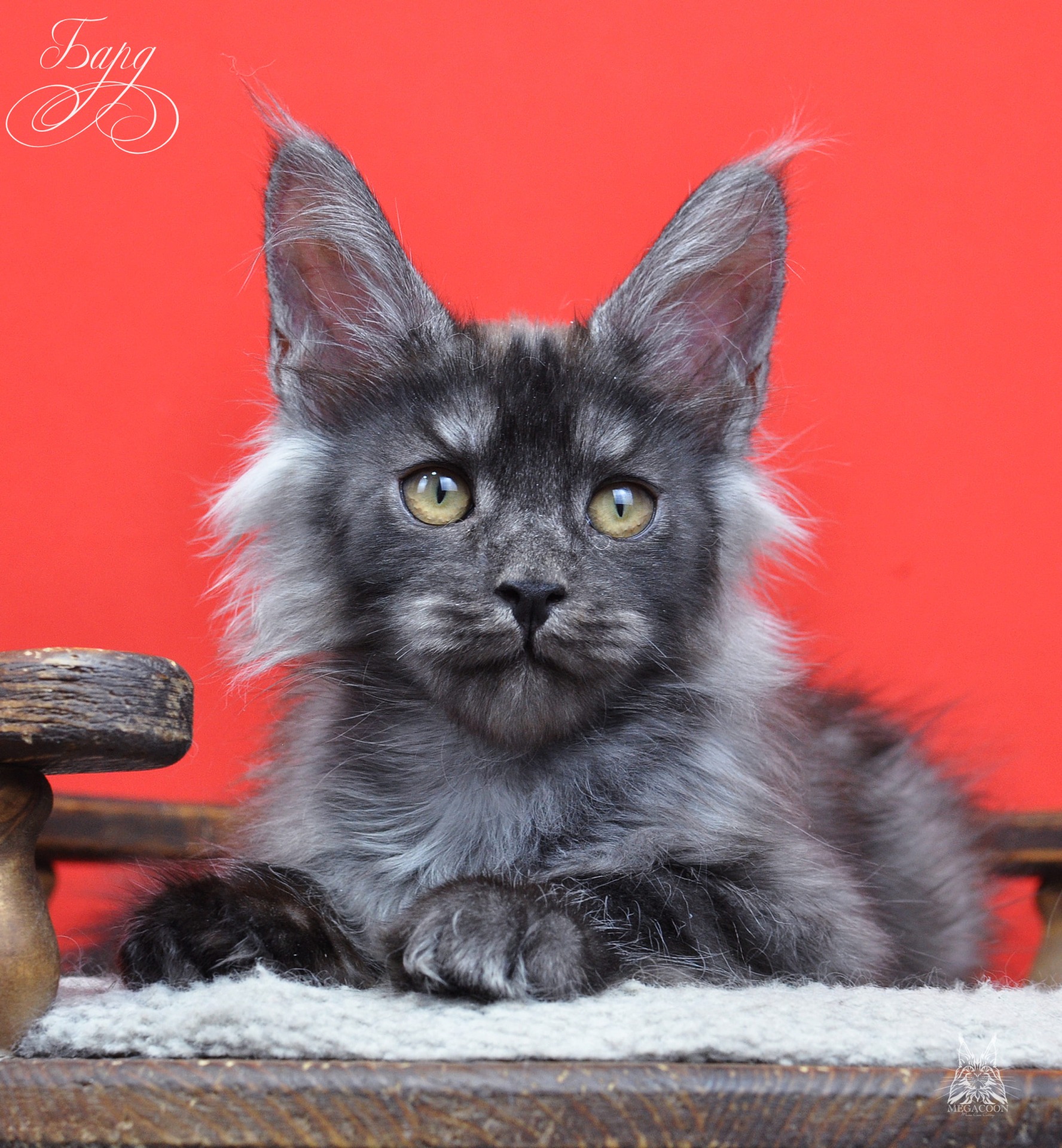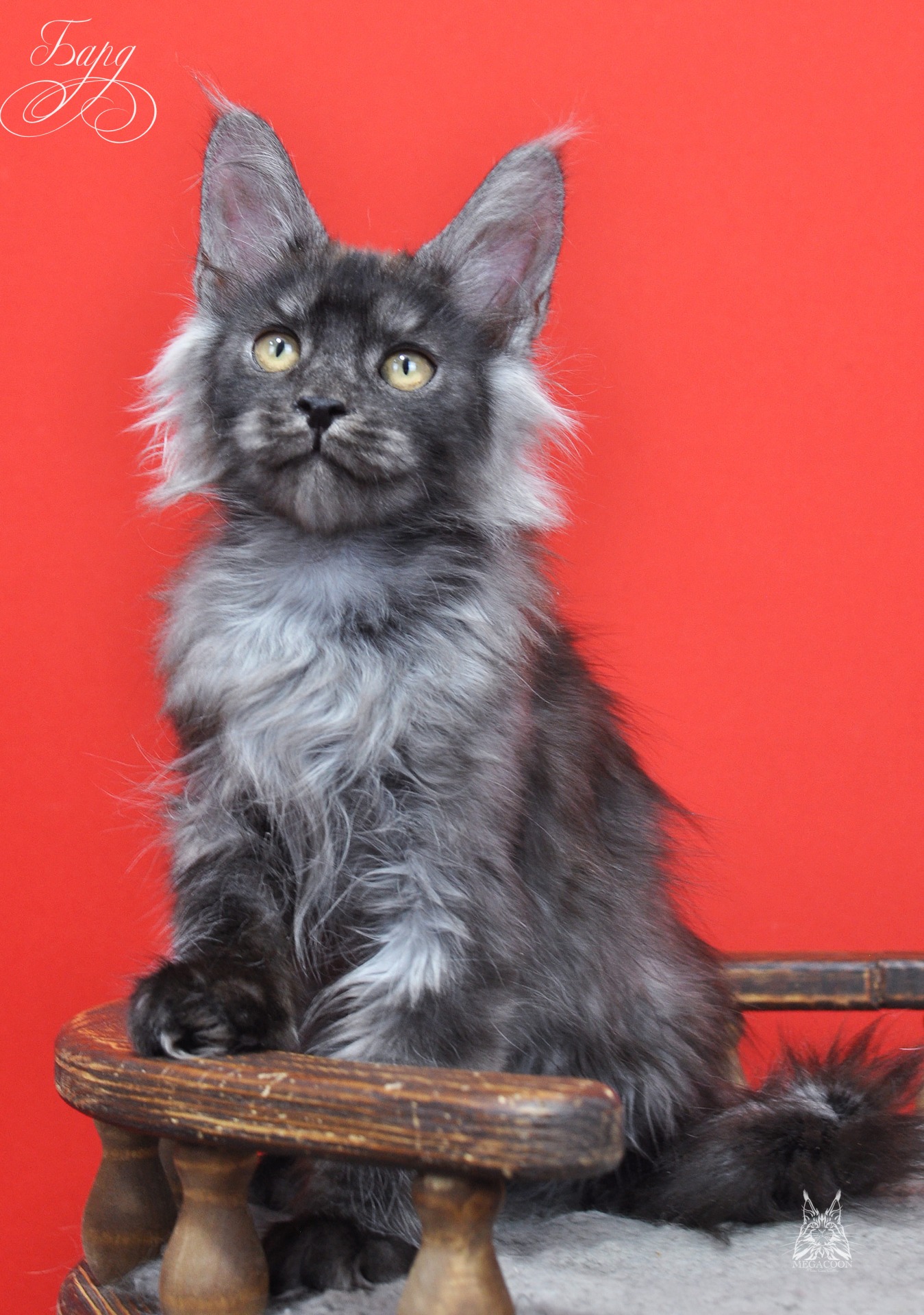 Бард. Котенок-волченок в трендовом и очень востребованном на сегодняшний день окрасе "черный дым". Котик крупный, мордатый с массивным подбородком, большие уши высокого постава. Супер малышь.