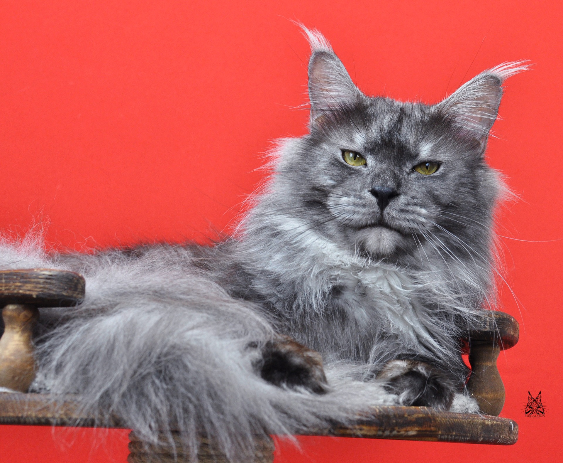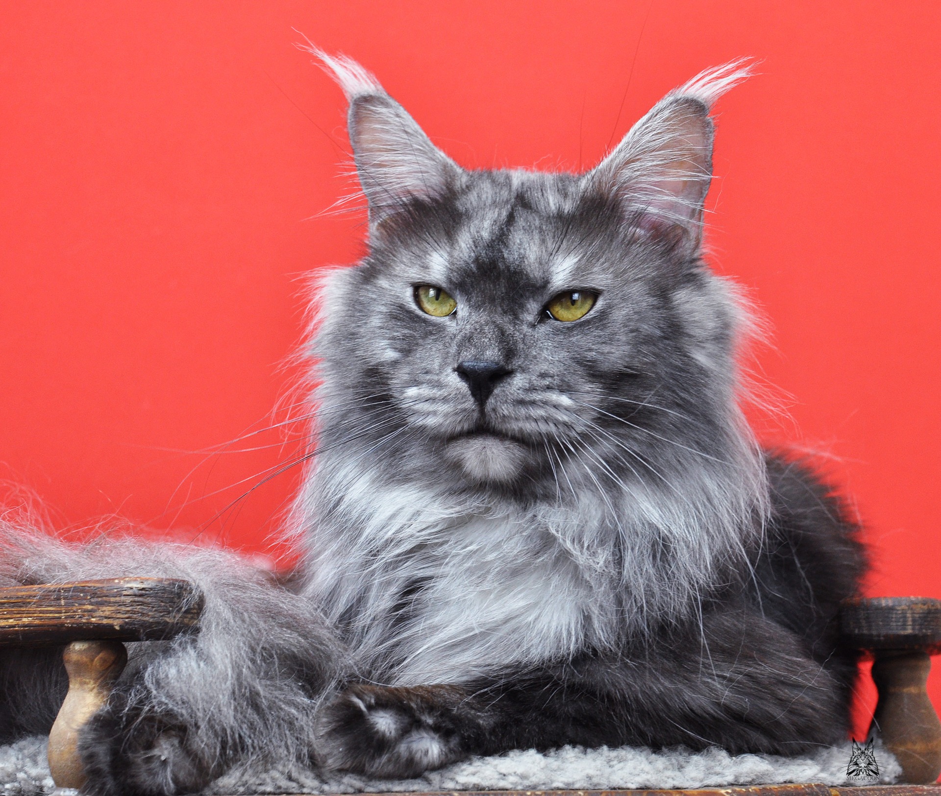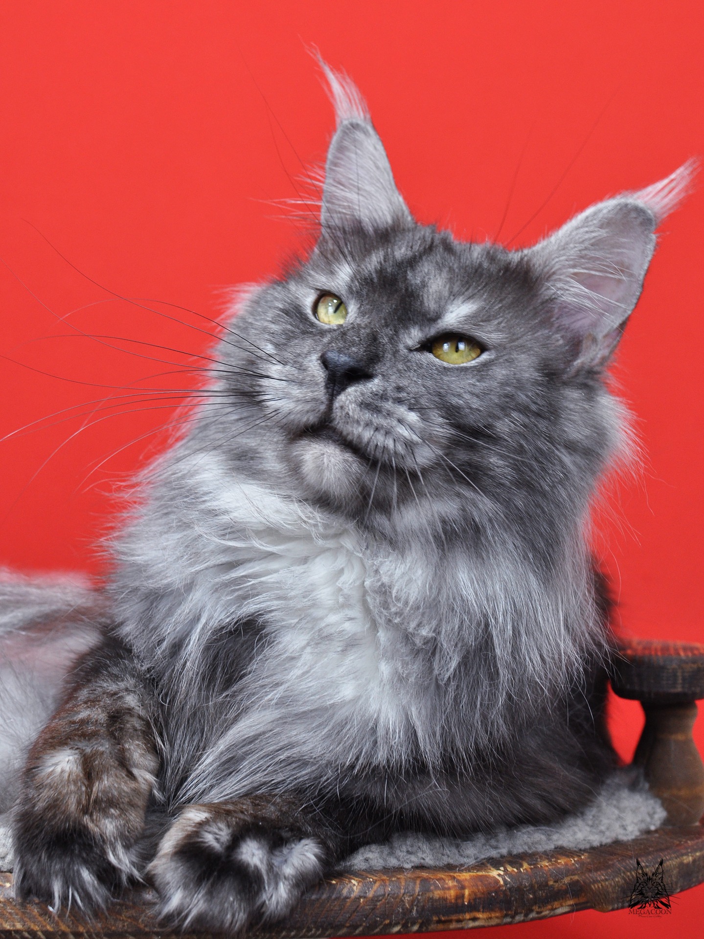 Лорд в окрасе черный дымчатый. Отличного качества серебро у парня. Нравится его породная голова: отличный профиль, высокий лоб и крутой переход от лба к носу, хорошо наполненная коробочка и высокий постав остроконечных ушей, украшенных длинными кисточками.
