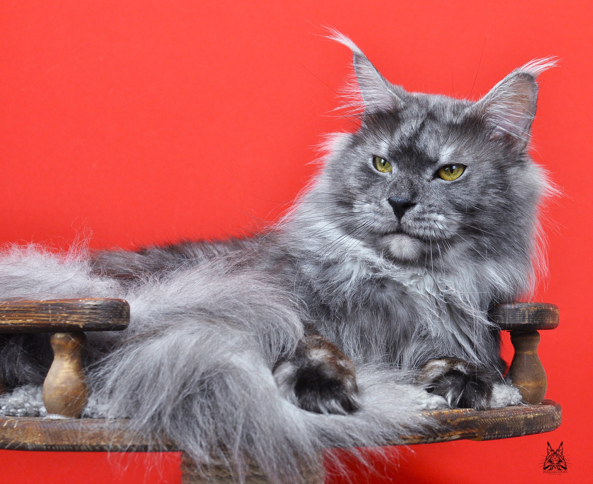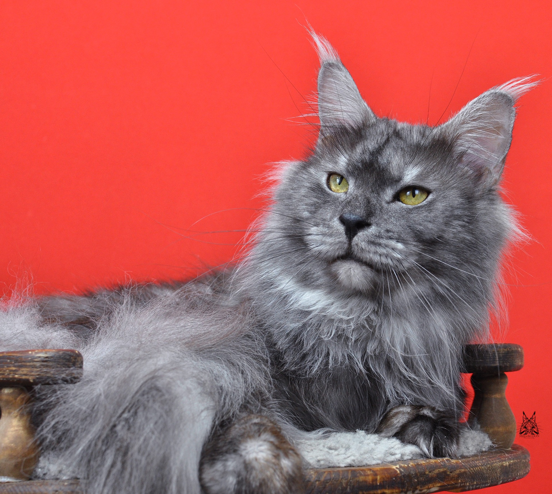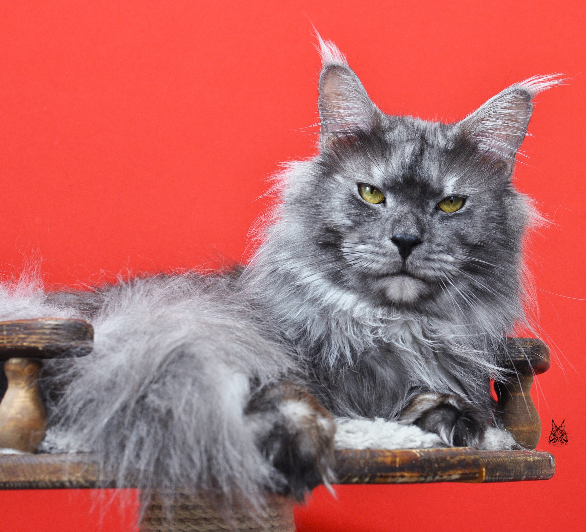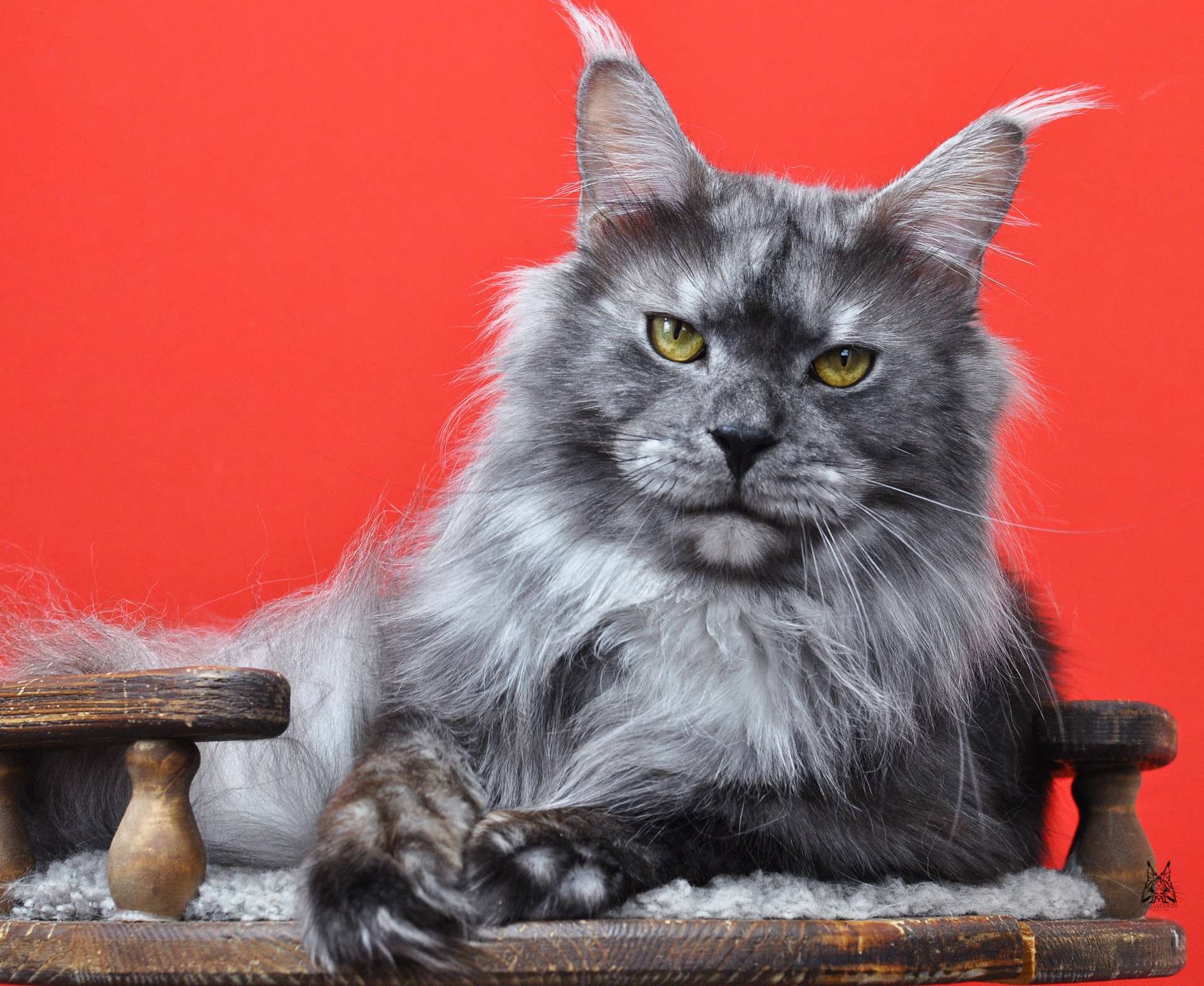 Лорд в окрасе черный дымчатый. Отличного качества серебро у парня. Нравится его породная голова: отличный профиль, высокий лоб и крутой переход от лба к носу, хорошо наполненная коробочка и высокий постав остроконечных ушей, украшенных длинными кисточками.